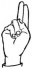 На ћирилици написано КОСТАДИН РОГЛИЋ састоји се из 14 слова [?]. Исписано ћириличном једноручном азбуком за глувонеме: